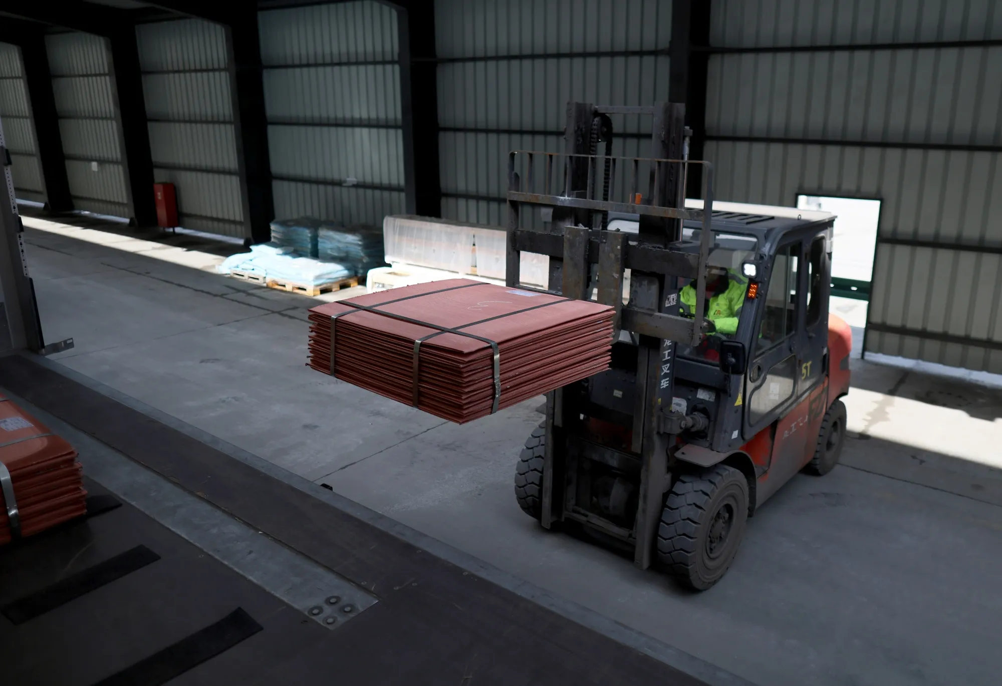四月,塞爾維亞博爾市某銅冶煉廠,工人正將陰極銅板裝車運輸。攝影師:Oliver Bunic/彭博社但許多交易商仍面臨棘手問題。今年迄今運抵美國的50萬至60萬噸過剩銅庫存中,僅有部分來自符合COMEX或LME合約交割標準的產商。海關數據顯示,摩科瑞能源集團、IXM和托克集團等貿易商近月向美國運輸了不符合交易所交割標準的非洲銅。