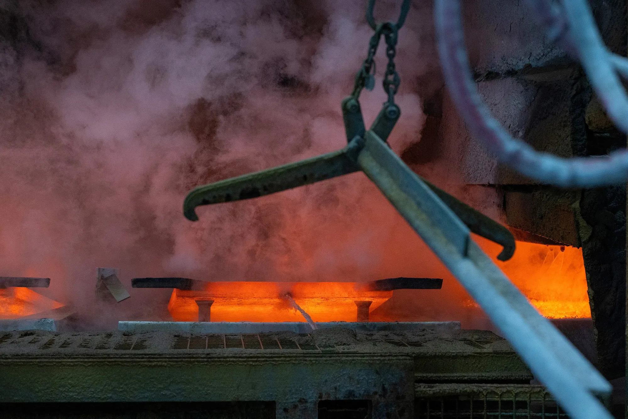 德國漢堡一家精煉廠的銅陽極製造場景。攝影師:克里斯蒂安·博奇/彭博社銅交易商正爭相預訂倉儲空間,他們押注美國總統唐納德·特朗普突然決定不對主要交易形式的銅徵收關税,將引發大量銅湧入倫敦金屬交易所的倉庫。