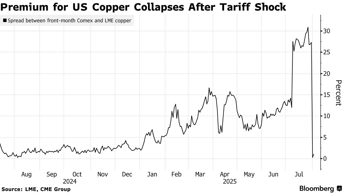 對實物交易商而言,關税政策的逆轉標誌着一代人難得一遇的最高利潤交易機會的終結。三週前特朗普宣佈將於8月1日起對銅徵收關税,曾引發企業爭相在截止日期前完成清關——如今這場競賽已失去意義。