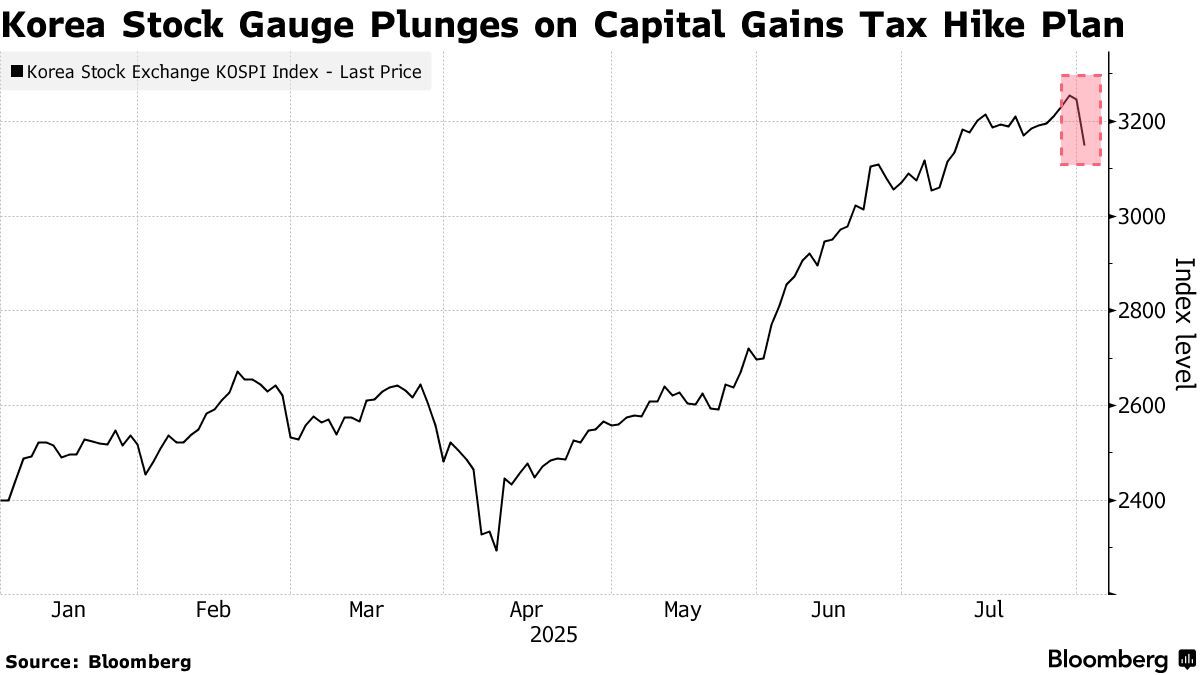 韓國計劃對投資者和企業增税,此舉突然打斷了全球最火熱的股市上漲行情之一,並可能引發對李在明總統上任僅兩個月的政府的不滿情緒。