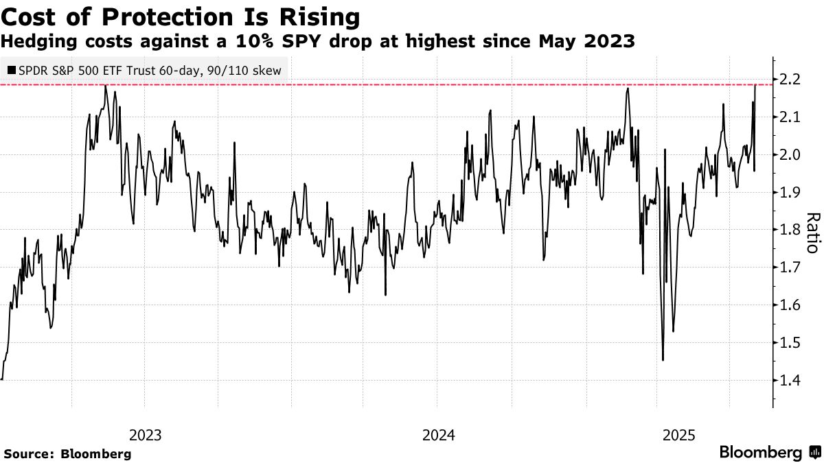 對沖成本攀升 股市暴跌擔憂重燃——彭博社
