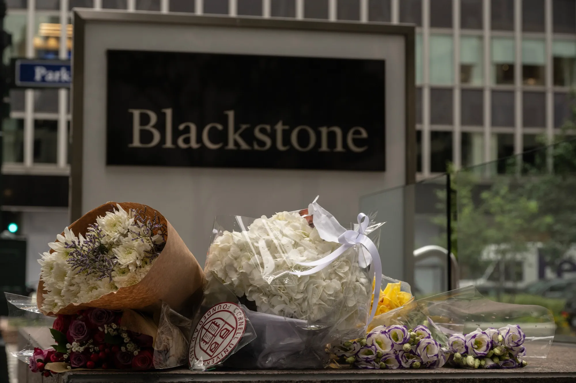 7月31日黑石集團總部外的紀念場景。攝影師:維克多·J·布魯/彭博社黑石地產高管韋斯利·勒帕特納是7月28日槍擊事件的遇難者之一,當時槍手在這棟摩天大樓的大廳開火,這是紐約市25年來最嚴重的大規模槍擊事件。