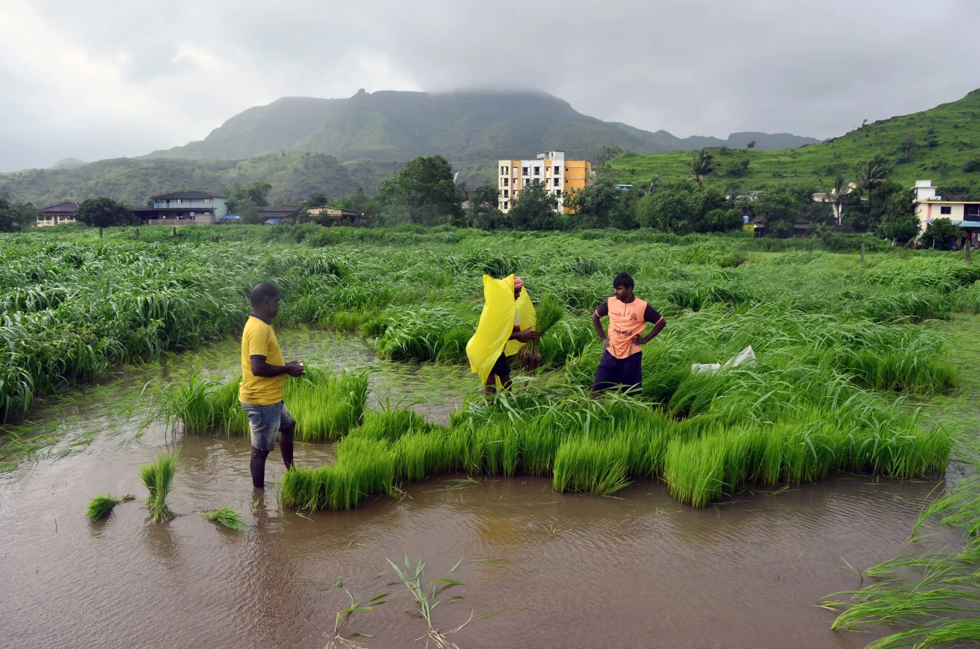 印度比夫普里,農民們在被洪水淹沒的稻田裏。攝影師:Indranil Aditya/彭博社在唐納德·特朗普總統將印度商品關税提高一倍後,新德里方面面臨開放市場以接納美國出口產品的壓力日益增大,總理納倫德拉·莫迪承諾將保護農民的利益。