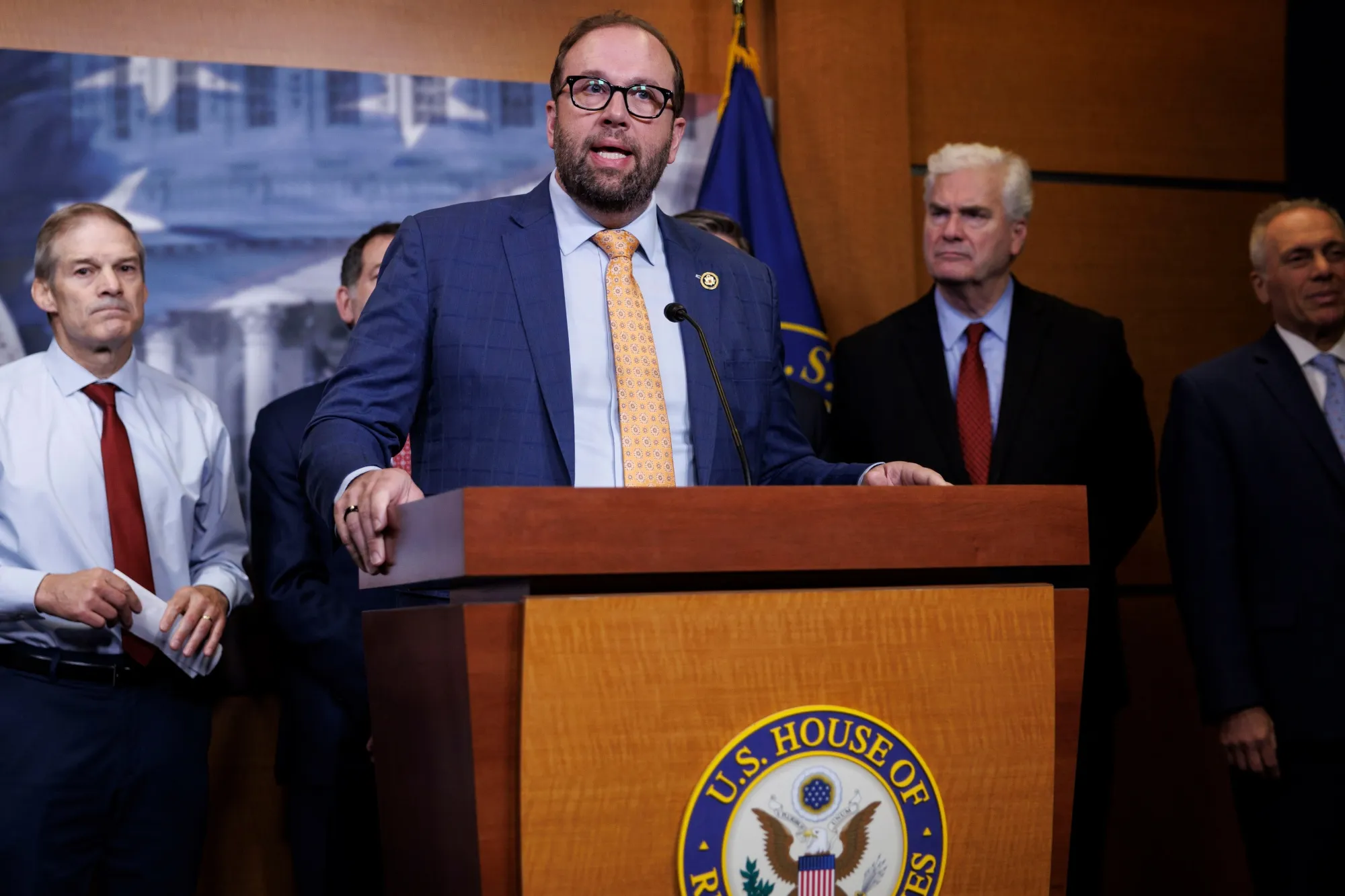 眾議員傑森·史密斯在美國國會大廈的新聞發佈會上發言。攝影師:沈婷/彭博社國會共和黨人押注,中期選舉前通過削減社會福利項目資金來提供更大規模的退税,將能抵消公眾對特朗普總統標誌性税法的初期不滿。