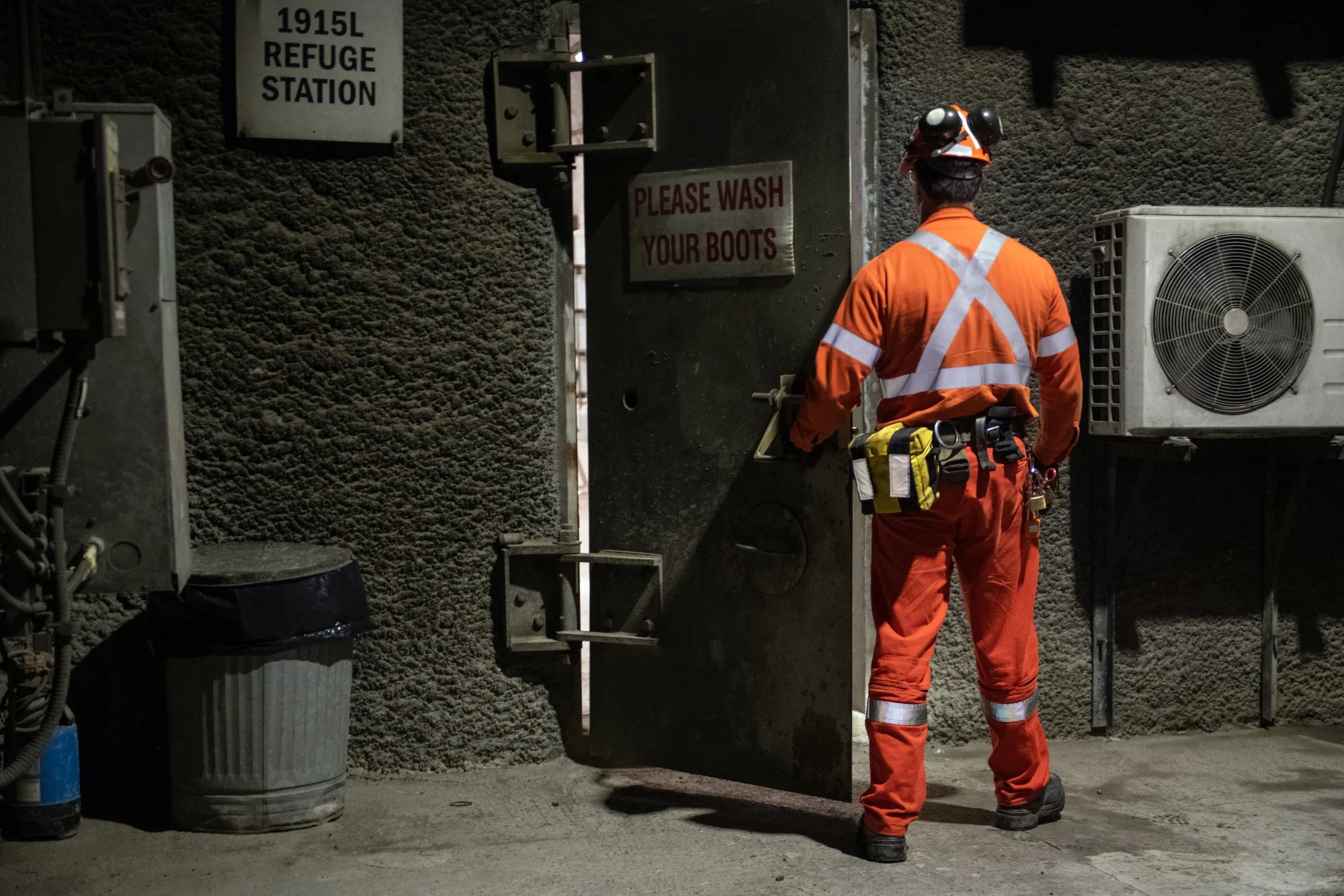 一名工人正進入加拿大嘉能可昂達平深井鎳礦項目1915米層的避難站。