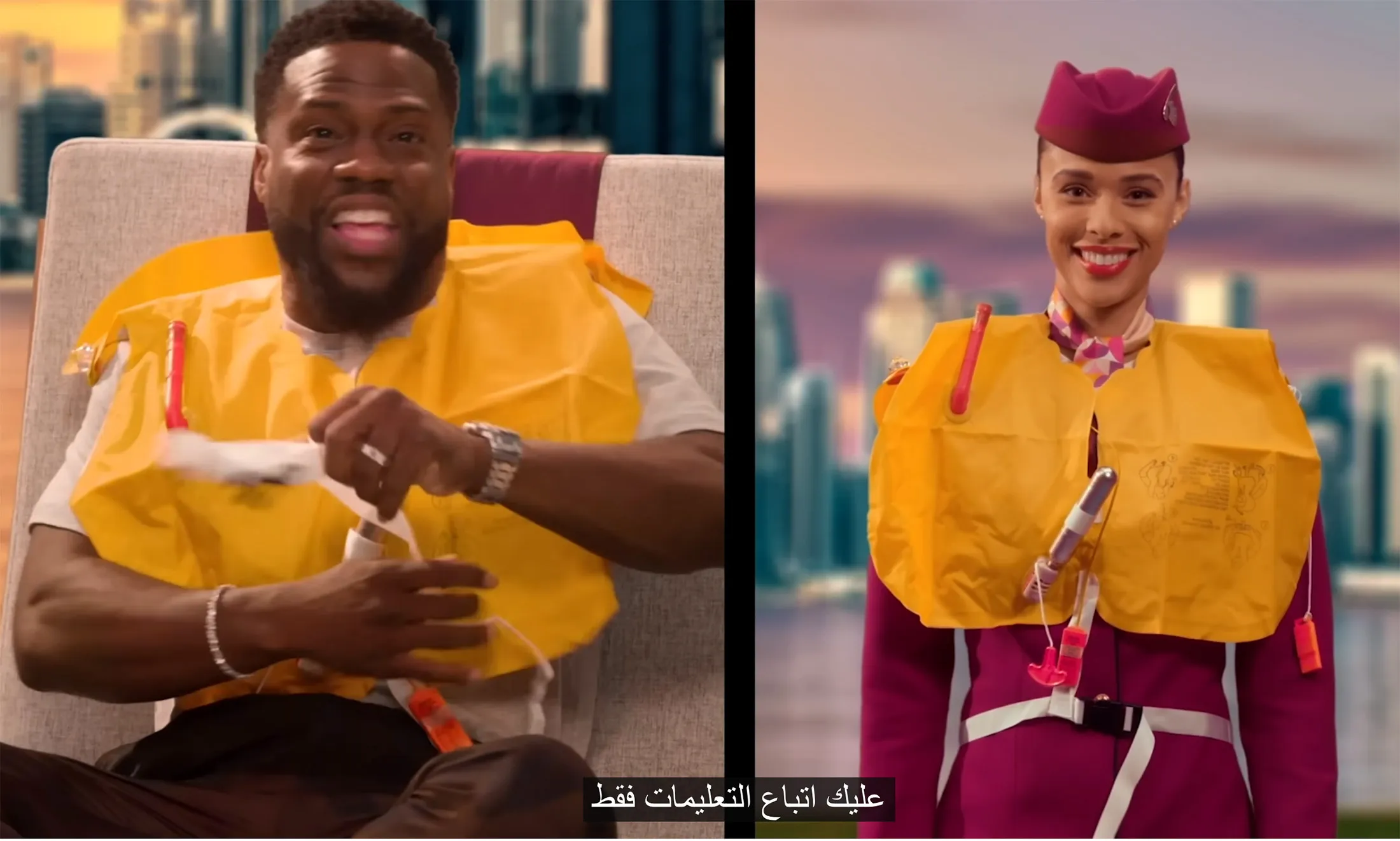 卡塔爾航空安全視頻中出現了凱文·哈特與一名空乘人員的身影。來源:卡塔爾航空/Youtube航空公司投入數百萬製作安全視頻,常藉助名人效應:如凱文·哈特為卡塔爾航空代言,新西蘭航空請霍比特人講解緊急情況應對。但最基本原則卻屢遭忽視:疏散時分秒必爭——行李必須留下。“帶着行李撤離是把財物置於他人生命之上,“迪拜動態高級培訓公司運營經理Mark Kammer表示,該公司為機組提供應急培訓,“每件帶離的隨身行李,都可能成為某個因你而失去安全撤離機會者的裹屍袋。”