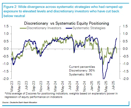 當前計算機輔助交易系統明顯比人類同行更為樂觀。德意志銀行策略師帕拉格·塔特指出,這種分歧程度已達到2020年初新冠疫情衝擊前夕的水平。