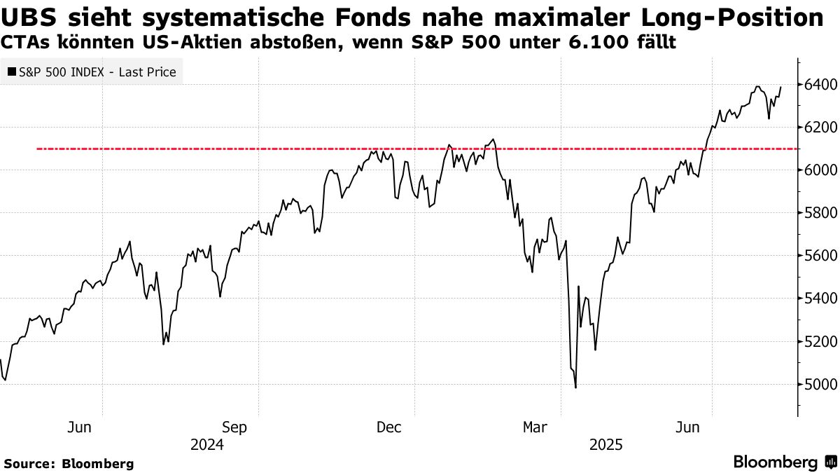 據瑞銀股票衍生品首席分析師麥克斯韋·格里納科夫稱,標普500指數需跌破6100點——較上週五收盤價下跌約4.5%——才會觸發CTA(商品交易顧問)開始拋售股票。