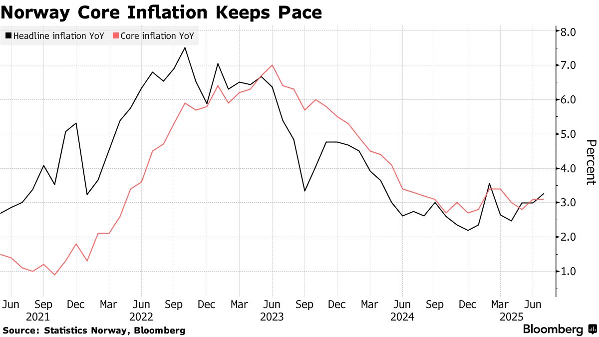 挪威7月核心通脹率保持穩定,符合該國央行的預期,這為官員們下個月繼續降息提供了支持。