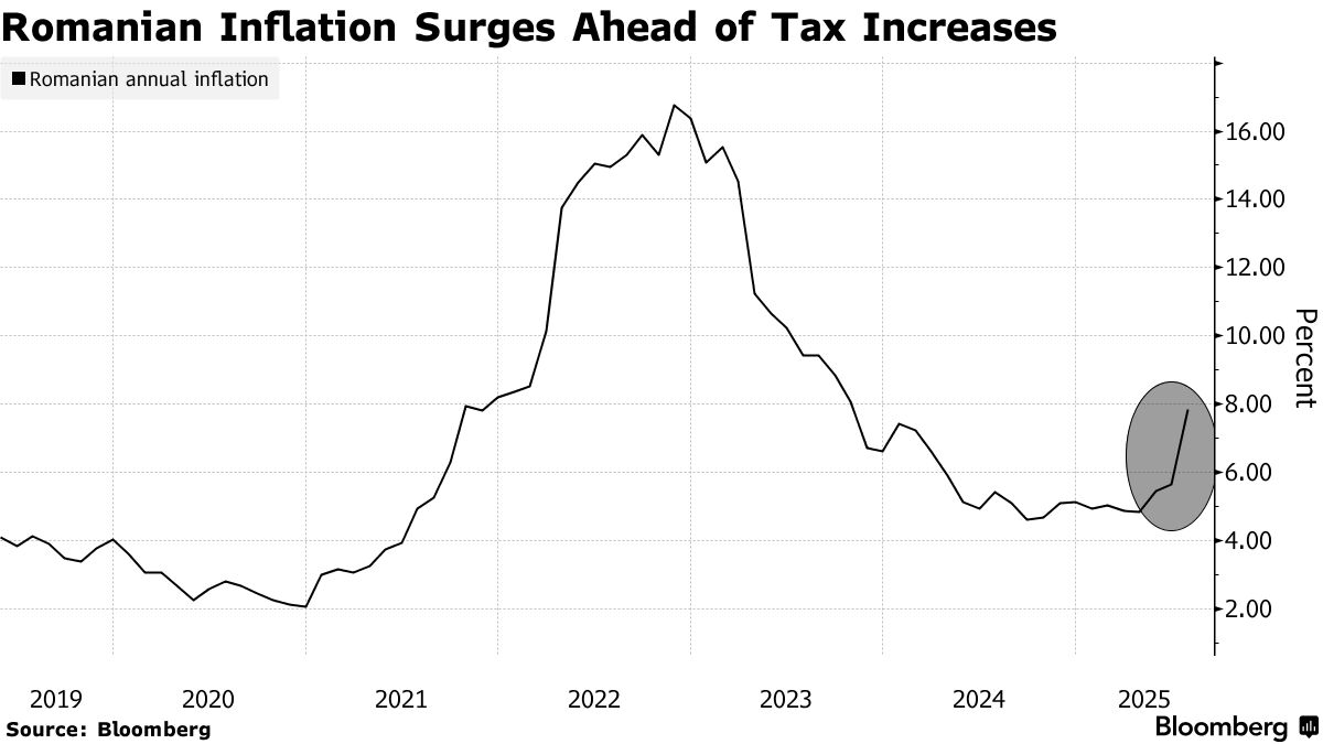 布加勒斯特統計局表示,7月消費者價格同比上漲7.8%,高於上月的5.7%,為2023年10月以來的最高水平。