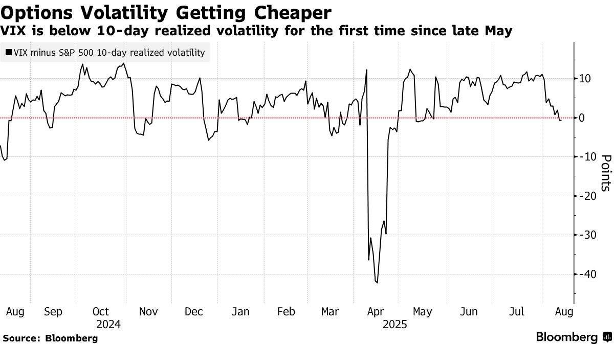 Cboe全球市場公司衍生品市場情報主管Mandy Xu表示,波動率指數(VIX)的暴跌——從月初的20以上跌至約14——是由那些為8月關税風波進行對沖卻未能等來行情的人"投降"所驅動的。徐向彭博社表示:“股市持續走高讓許多對沖者感到沮喪,他們此刻正在認輸。”