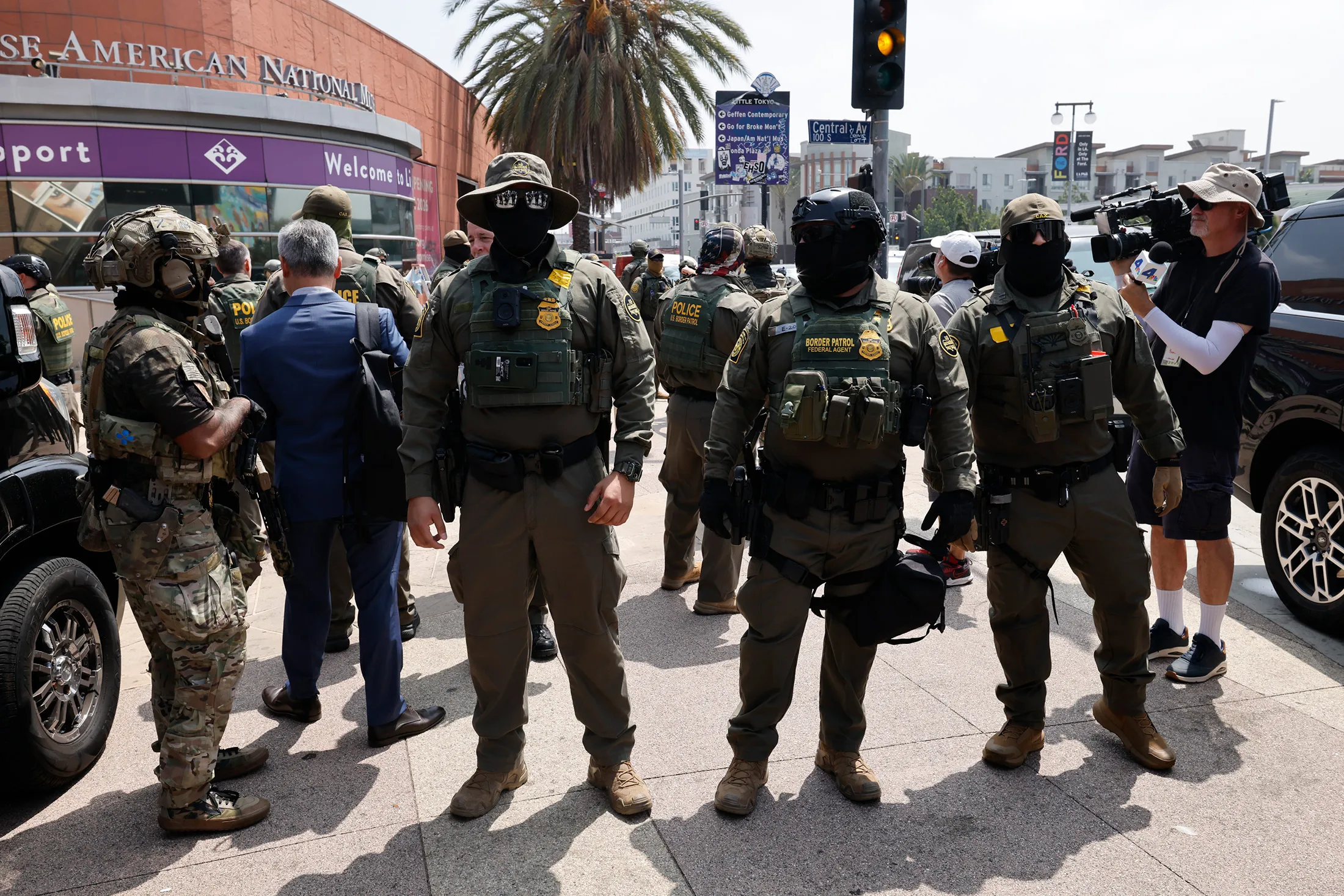 邊境巡邏隊特工衝進加文·紐森的選區重劃啓動儀式 - 彭博社