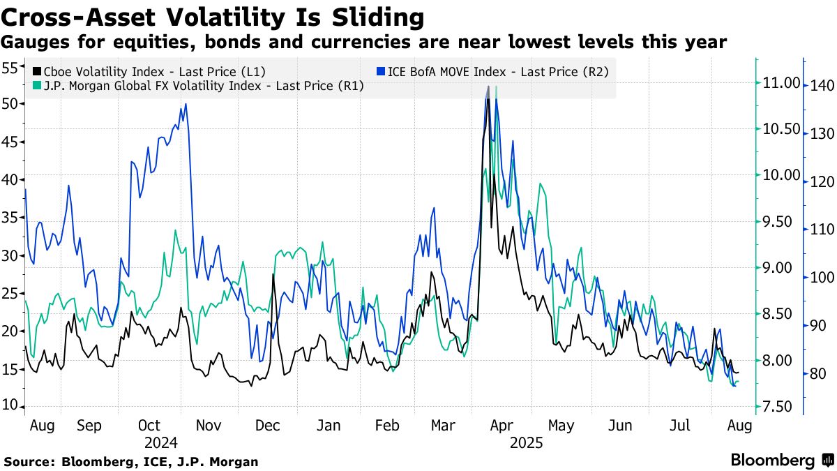 標普500波動率的關鍵指標已跌至去年12月以來的最低水平,而東京至紐約的股市則飆升至創紀錄高點。這些變動僅在特朗普4月宣佈所謂的“解放日”關税引發市場大幅回撤幾個月後發生。