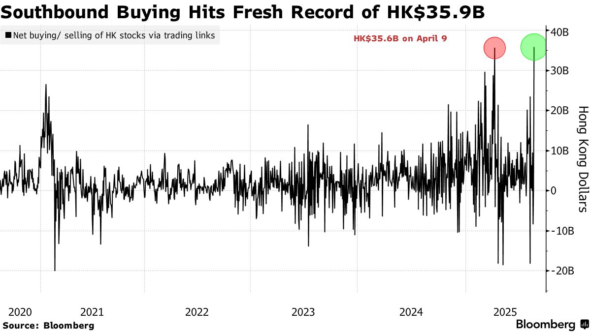 根據彭博彙編自2016年末的數據,這一數字超過了4月特朗普宣佈全面加徵全球關税時創下的356億港元紀錄。當日衡量港股中資股表現的指數跌幅從1.5%收窄至1%。