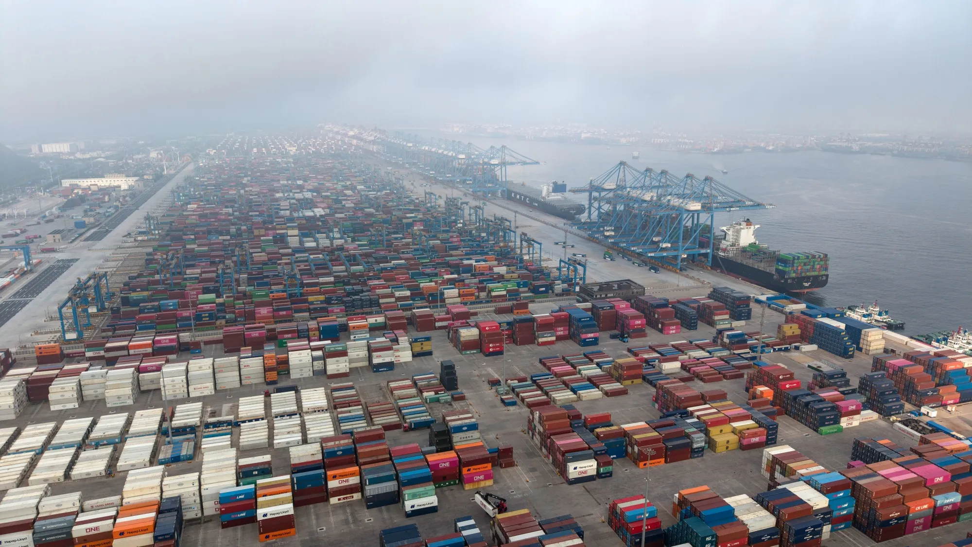 中國7月出口額同比增長7.2%至3220億美元,超出預期。圖為青島港的集裝箱碼頭。攝影:彭博社全球其他地區能繼續消化中國產能多久仍是個未知數。歐洲政策制定者已暗示其耐心正在逐漸消磨。