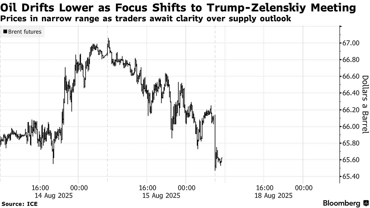 投資者將把注意力轉向特朗普與澤連斯基在華盛頓的會談,以尋找美俄峯會結束後市場下一步走向的線索,此次峯會未對俄羅斯或其原油買家實施新制裁。交易員們還在美聯儲傑克遜霍爾年會前保持謹慎,密切關注主席傑羅姆·鮑威爾的講話,以獲取9月降息的指引,此前美國公佈了近期數據。