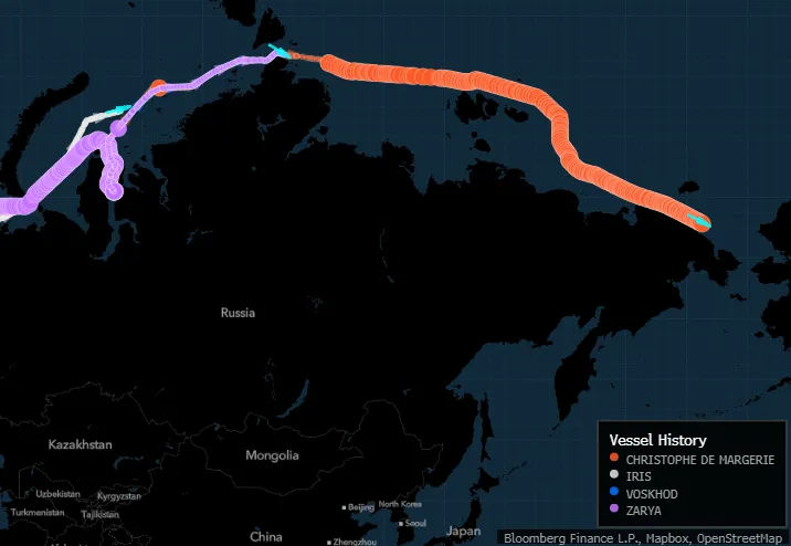根據彭博彙編的船舶追蹤數據,裝載西伯利亞北極液化天然氣2號項目貨物的Iris和Voskhod號船舶,在閒置數週後於8月15日開始通過北海航線駛往北亞。另外兩艘近期在該設施裝載的油輪也於上週啓程前往亞洲。