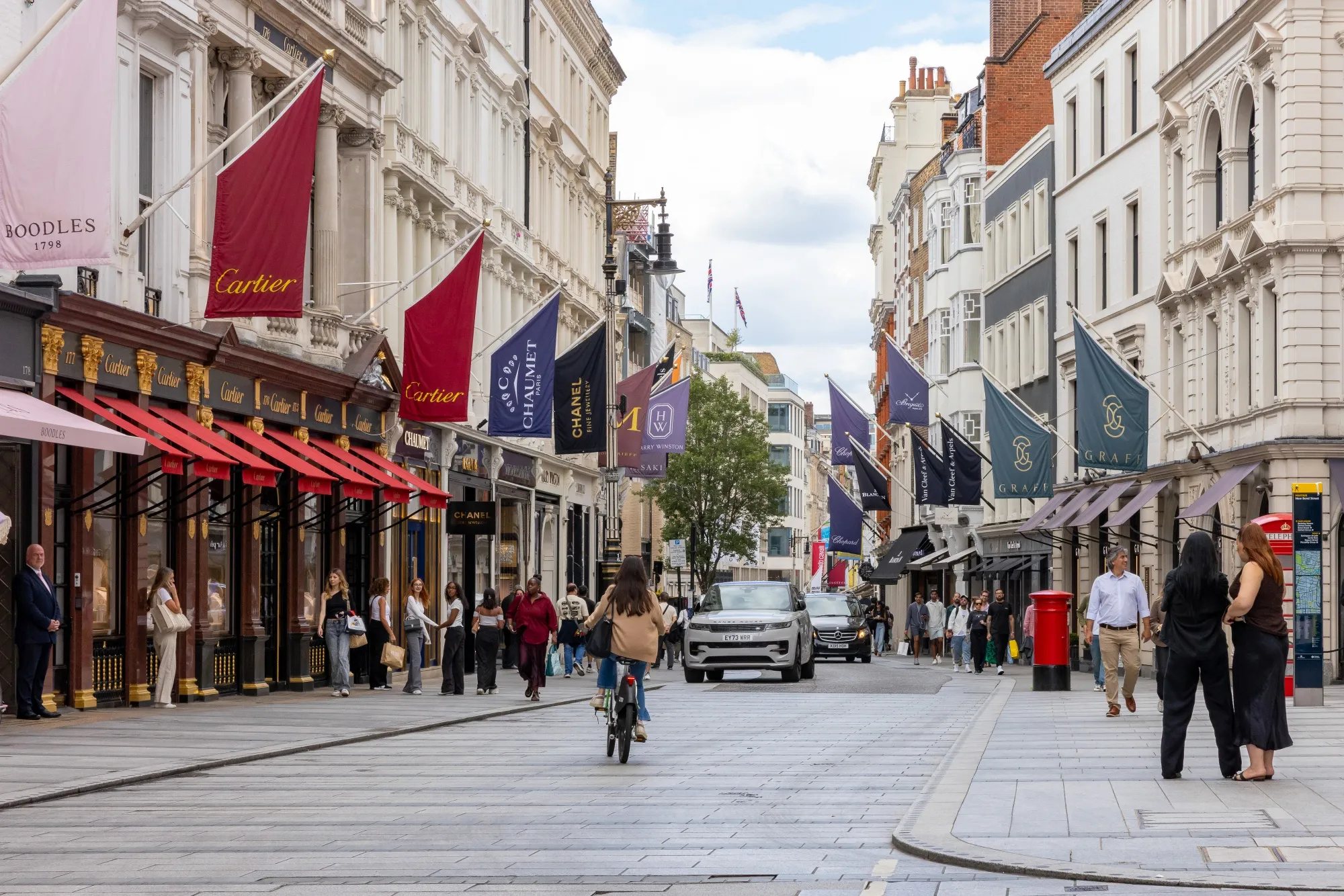 倫敦西區的高端時尚精品店。攝影師:貝蒂·勞拉·薩帕塔/彭博社倫敦最繁忙購物區在後疫情時代的復甦勢頭正勁,推動英國首都零售地產交易額有望創下2018年以來的最高水平。