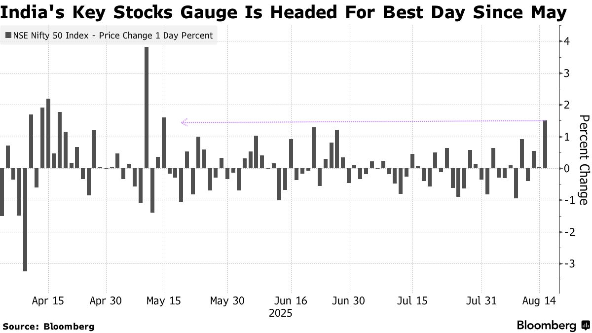 全球市場動態也提振了市場情緒。儘管美國總統特朗普與俄羅斯總統普京的週末會談未取得突破,但未出現新的緊張局勢緩解了印度的壓力,該國此前因石油採購面臨美國的懲罰性關税。近期原油價格的下跌應能進一步改善上個月擴大的貿易逆差。