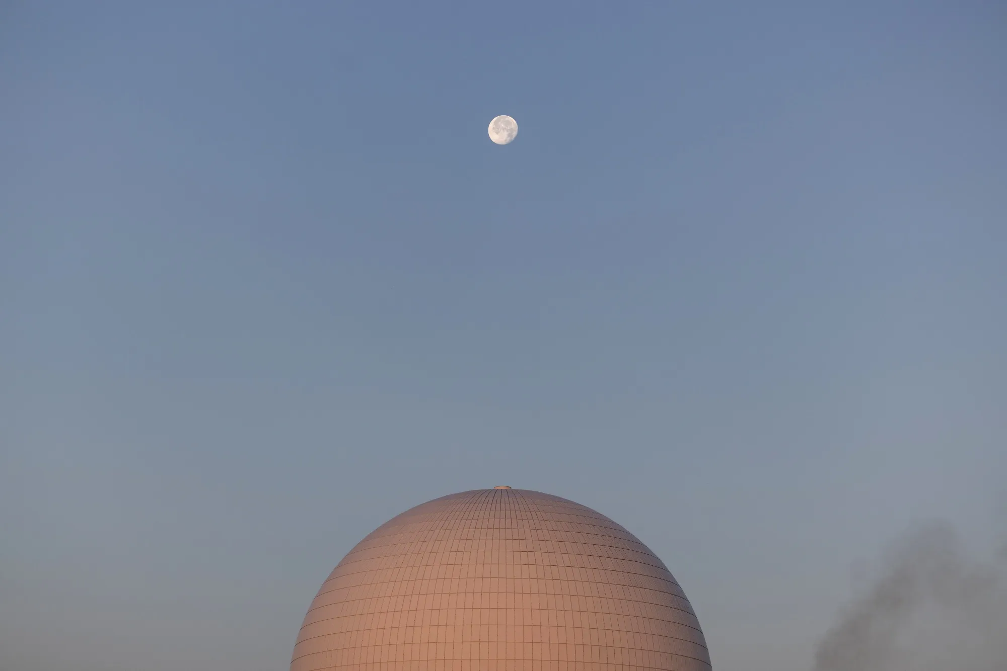 2025年8月11日,英國塞茲韋爾,法國電力公司(EDF)運營的塞茲韋爾B核電站上空的月亮。攝影師:克里斯·拉特克利夫/彭博社### 更多來自彭博社的內容