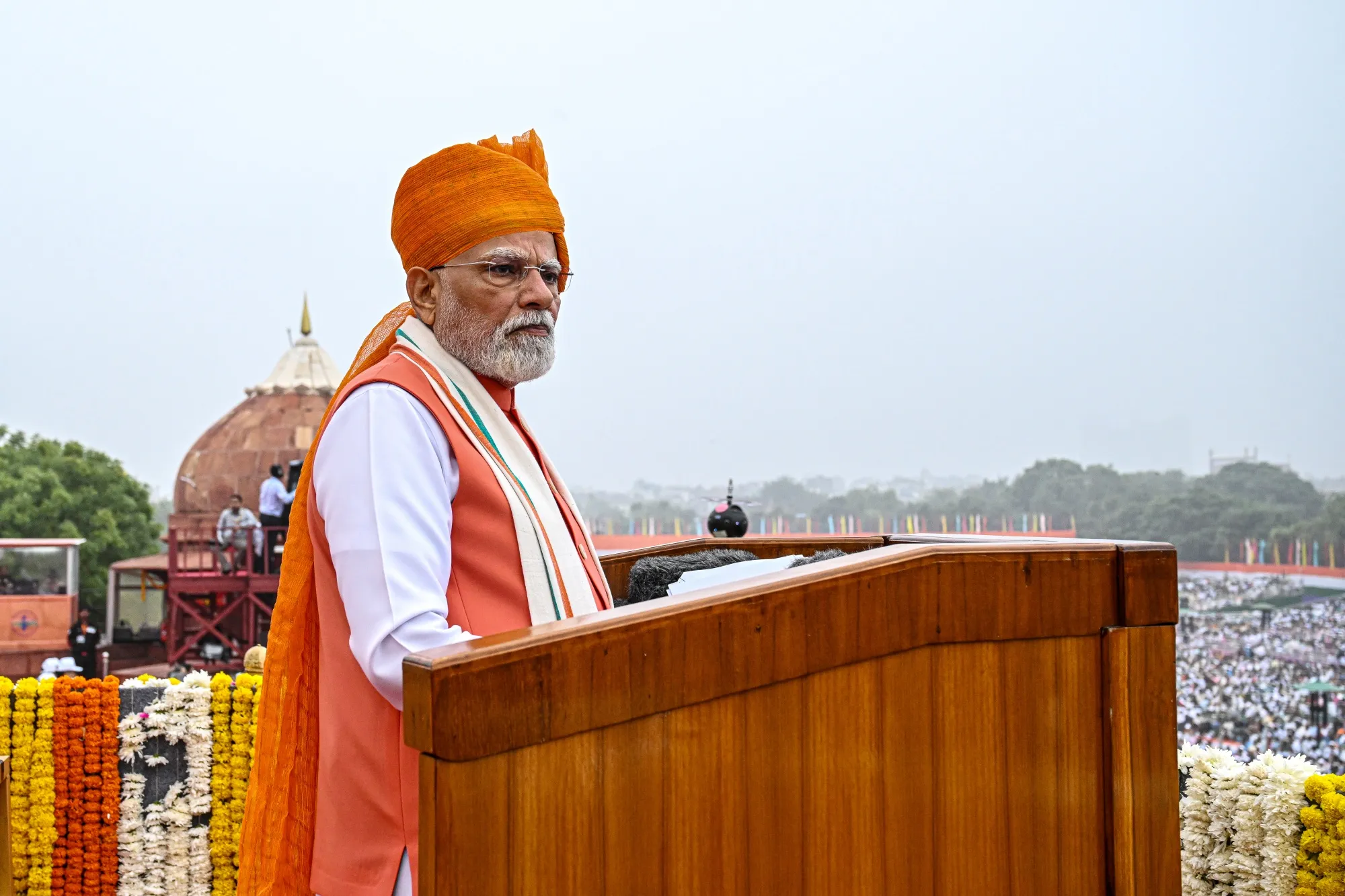 8月15日,印度總理納倫德拉·莫迪在新德里紅堡舉行的國家獨立日慶典上。