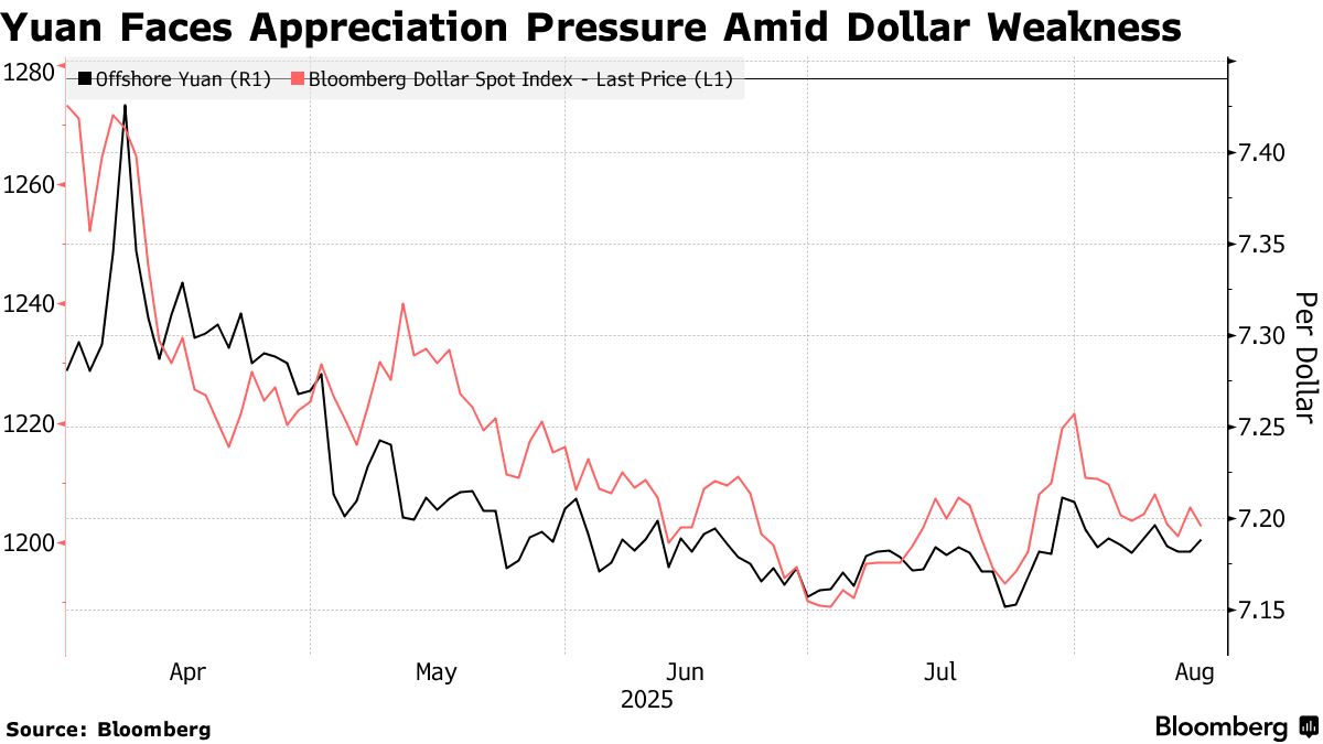 管濤來源:中國銀行國際證券儘管隨着全球投資者撤離美國資產,美元今年已下跌約8%,但人民幣在岸匯率僅上漲1.6%,成為亞洲表現較弱的貨幣之一。相對於貿易加權的一籃子貨幣,人民幣已下跌5.2%,落後於大多數主要貨幣。