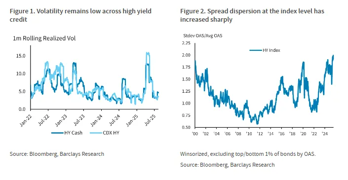 儘管高收益債券表現看似堅挺,但個體差異正在加劇。投資者不再將垃圾債視為同質化資產,甄別優劣變得前所未有的重要。信用評級越低,表現分化越顯著。巴克萊銀行的Corry Short指出整體指數的收斂掩蓋了這一現實: