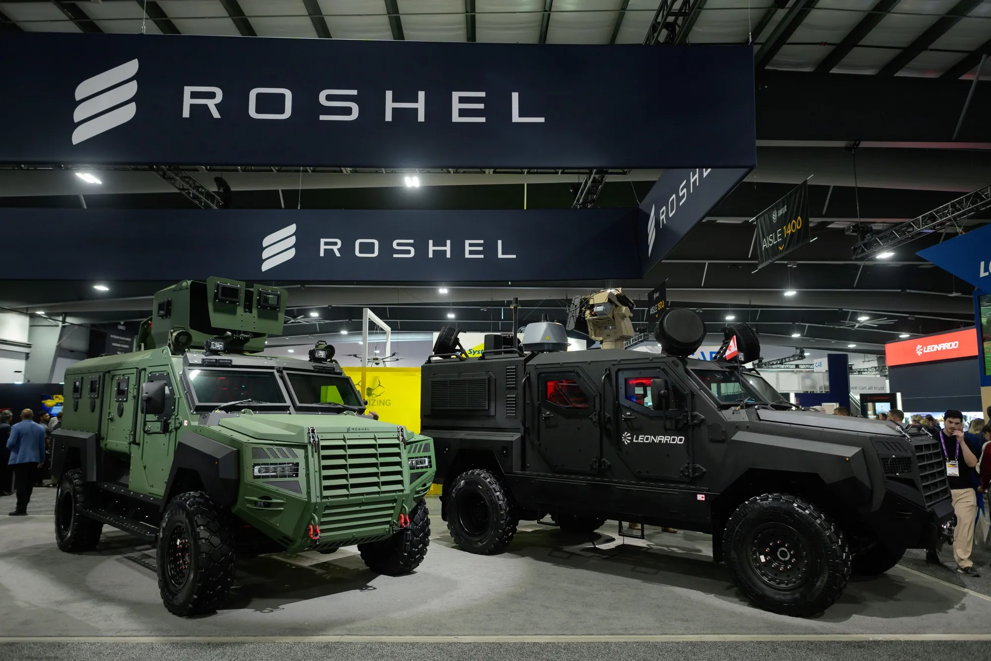 渥太華貿易展上羅謝爾展位的軍用車輛。