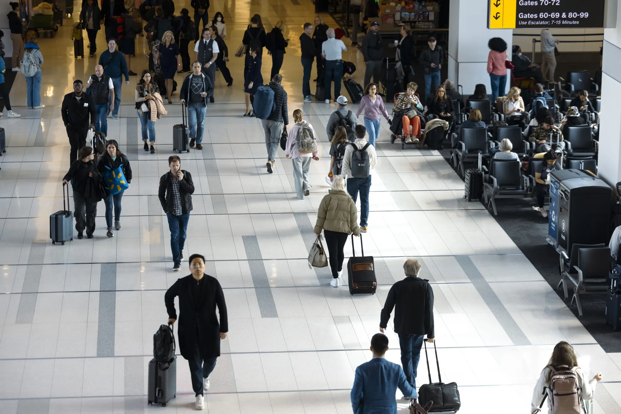 紐約拉瓜迪亞機場(LGA)的旅客。攝影師:安格斯·莫丹特/彭博社在紐約肯尼迪國際機場和拉瓜迪亞機場接受採訪的乘客表示,臨近出行才預訂機票有諸多原因。包括最後一刻的票價優惠、突發的人生大事以及未能按預期成行的計劃等。有些旅客為即時滿足感衝動下單,把費用問題留到以後考慮。