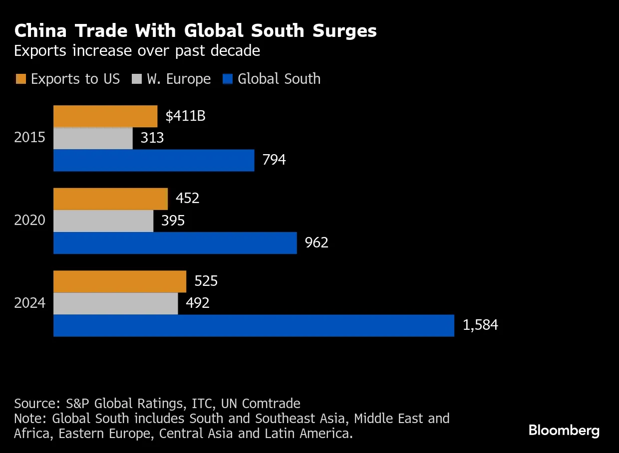 標普經濟學家在報告中表示:“美國關税政策的高度不確定性和中國經濟放緩,將持續推動中國企業向全球南方進軍。其結果可能形成全球貿易新秩序:南南貿易成為新重心,中國跨國企業崛起為主要參與者。”