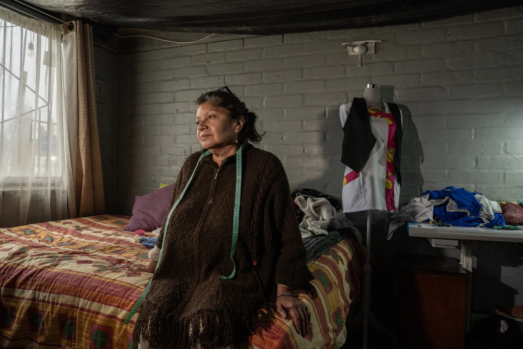 傑奎琳·卡迪茲在2024年2月的致命山火中失去了家園。攝影:塔瑪拉·梅里諾/彭博社63歲的裁縫傑奎琳·卡迪茲自去年火災燒燬她位於同棟頂層的住宅後,一直借住在鄰居的客廳。回憶起災後政府提供的防雨布太小,無法為臨時住所抵擋太平洋襲來的寒風雨水時,她不禁皺起眉頭。
