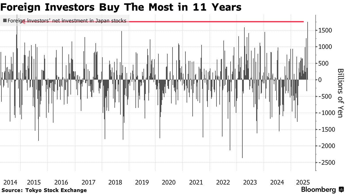 外國人11年來最大規模買入日本股票 市場預期需求將持續增長——彭博社