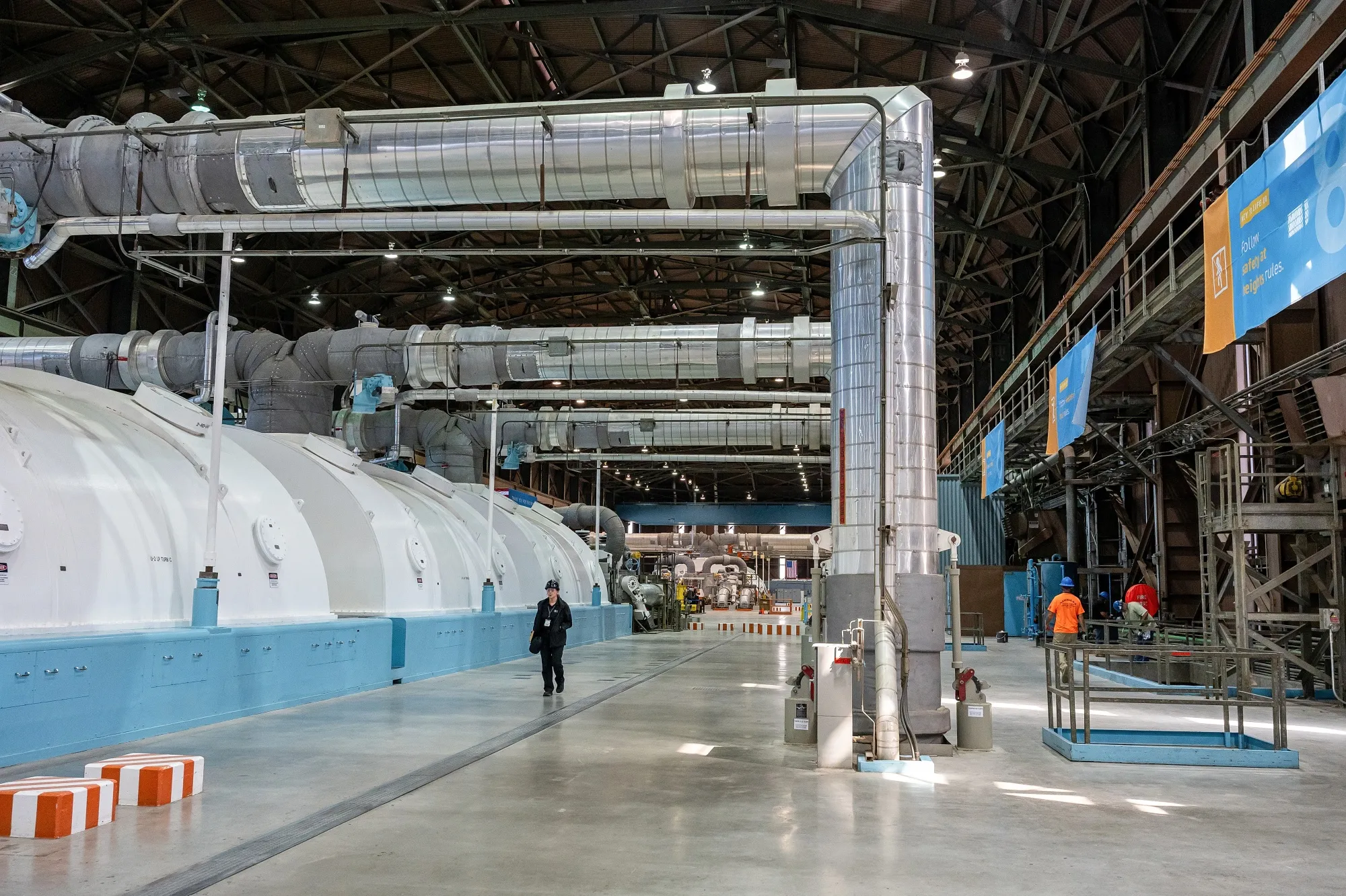 攝影師:麗貝卡·諾布爾/彭博社在降低電價和實現氣候目標的政治壓力下,電網需接入更多可再生能源。因此當前增加慣性的解決方案是採用同步補償器(或稱同步調相機)。本月我不僅實地考察了利物浦的運行現場,還參觀了西門子能源生產這些電網穩定設備的德國米爾海姆工廠。