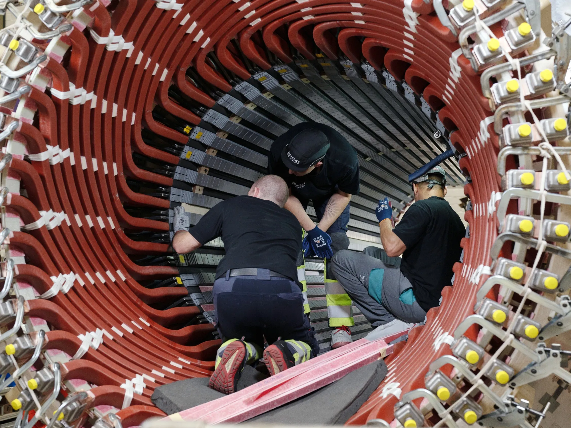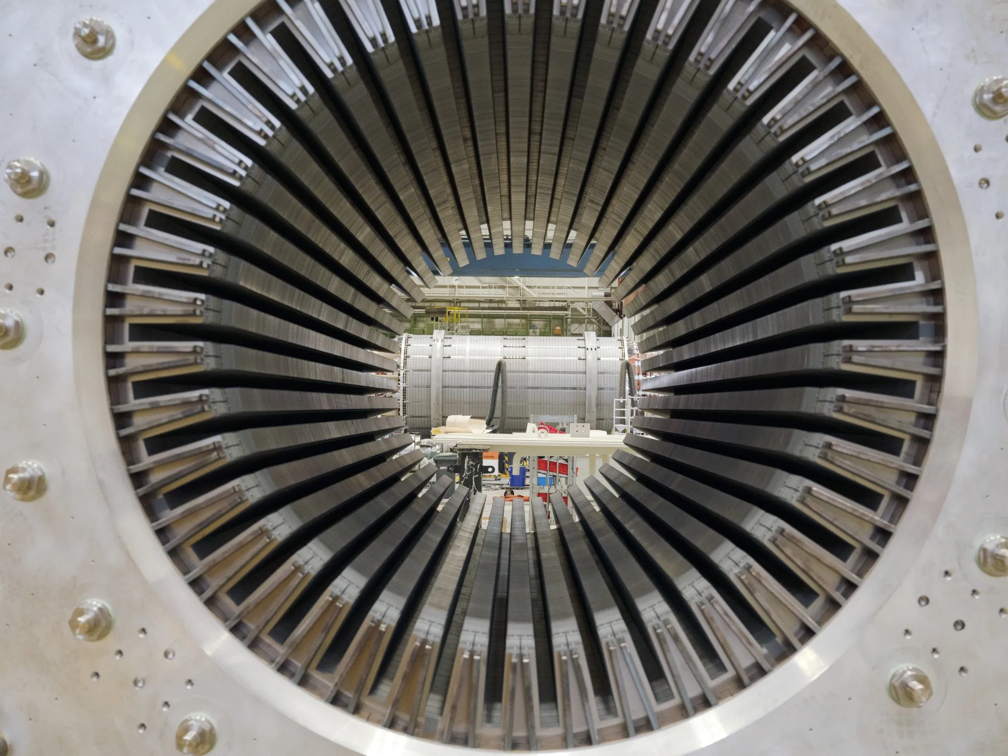 去掉所有保護外殼後,這台設備看起來就像科幻電影裏的產物。它由數千個精密設計並精心組裝的獨立部件構成——這是必要的,因為西門子能源製造的最大型同步調相機能提供相當於核電站的"無功功率”。