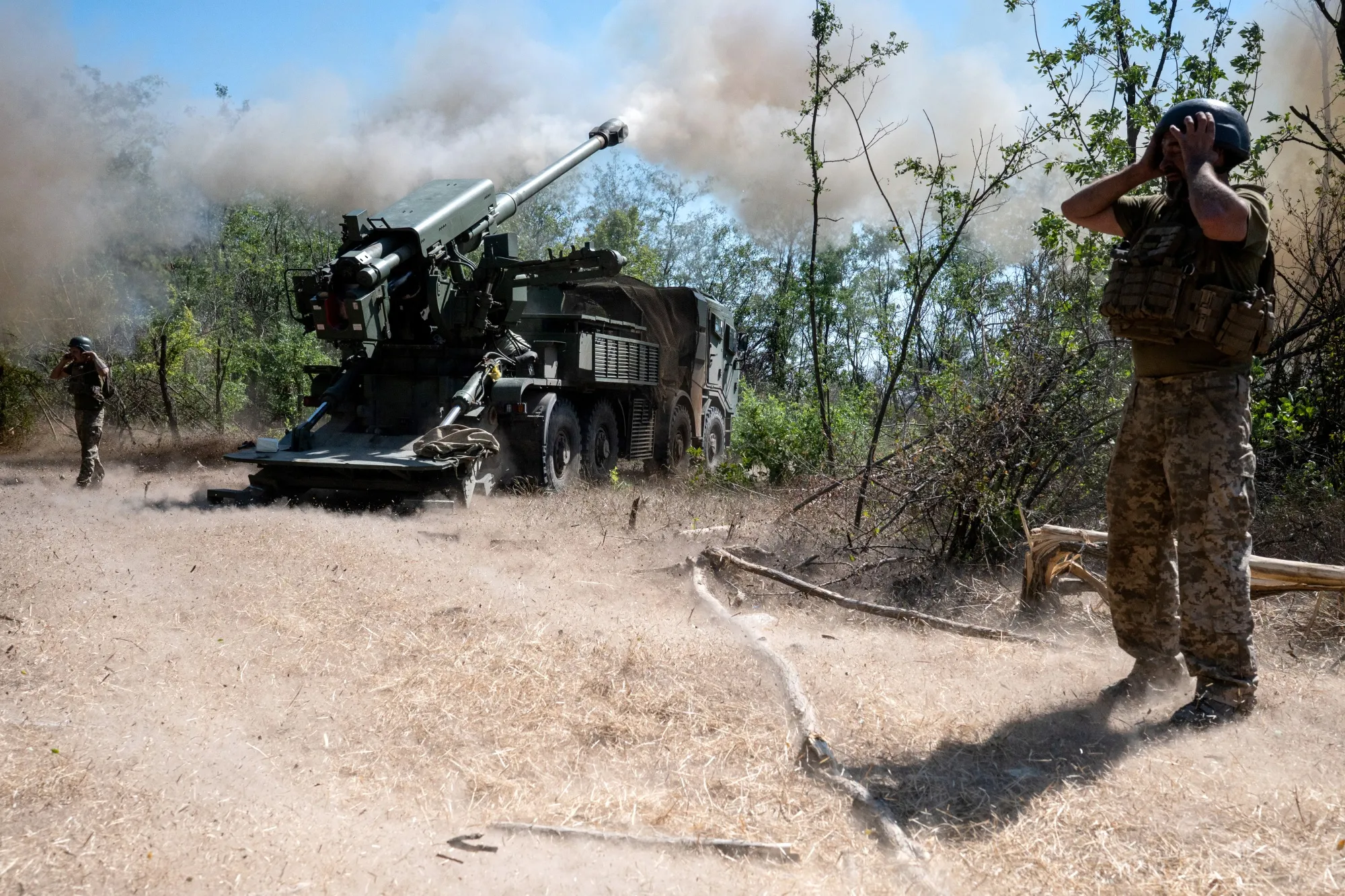 8月20日,烏克蘭扎波羅熱地區,一支炮兵部隊的士兵發射了一門2S22 Bohdana自行榴彈炮。照片:Danylo Antoniuk/Ukrinform/NurPhoto/Getty Images在另一篇帖子中,特朗普發佈了兩張照片——一張是他用手指指着普京的胸部,另一張是當時的副總統理查德·尼克松對蘇聯領導人尼基塔·赫魯曉夫做出類似手勢的照片。