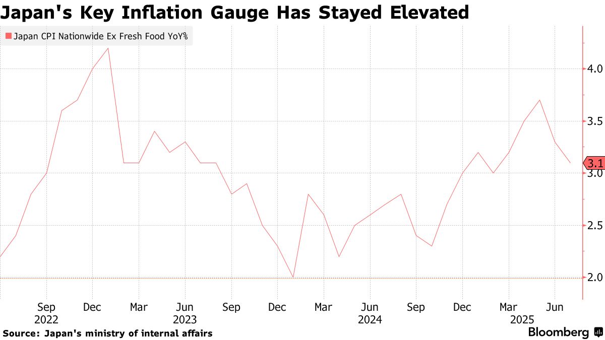 日本總務省週五公佈數據顯示,7月除生鮮食品外的核心消費者價格指數同比上漲3.1%,較前月3.3%的漲幅有所回落。經濟學家此前預期中值為上漲3%,主要因能源價格在去年飆升後形成拖累。