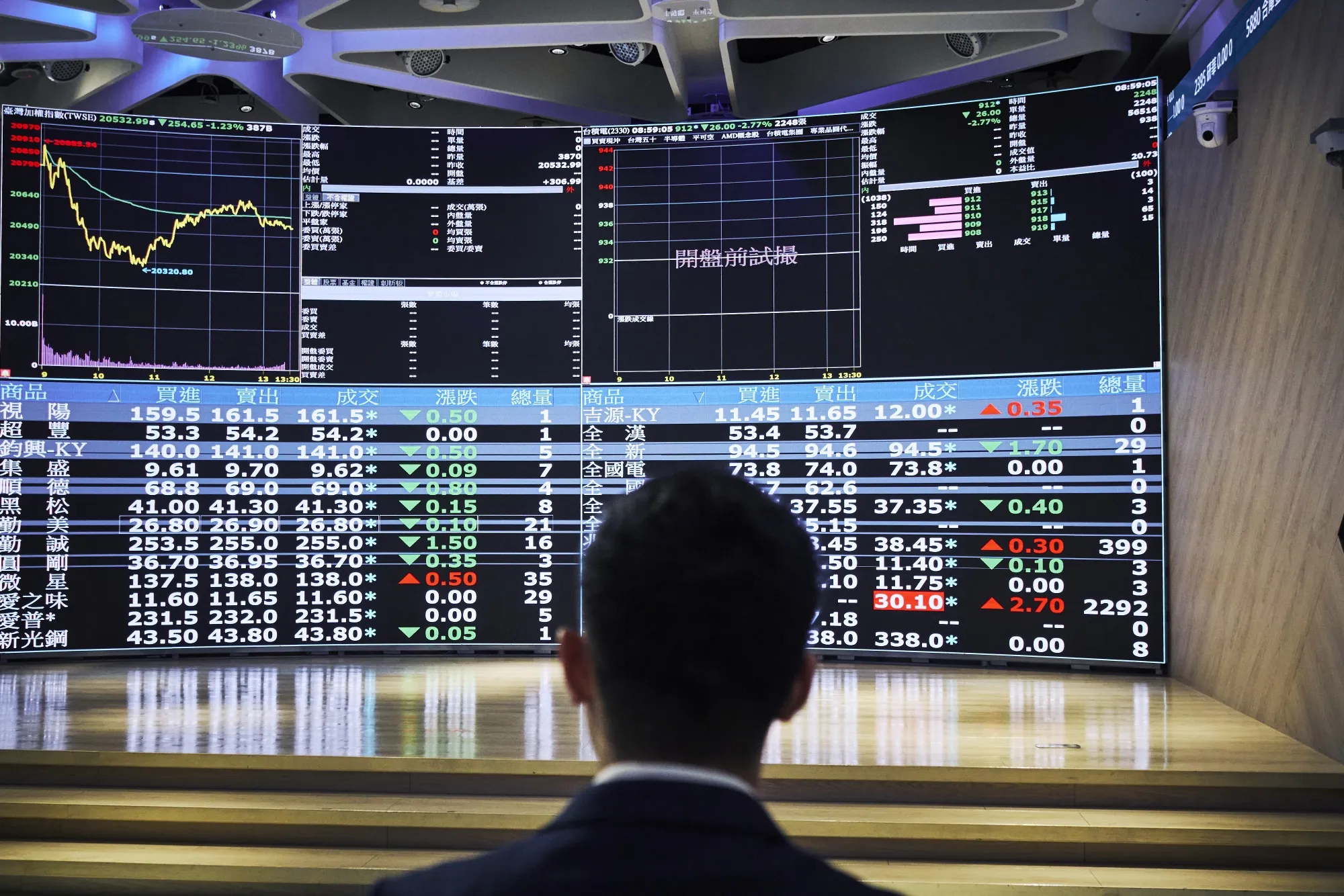 台北台灣證券交易所總部顯示的股市信息。攝影師:徐安榮/彭博社台灣第二季度跨境資本流動的劇烈分化,增加了新台幣匯率波動加劇的可能性。