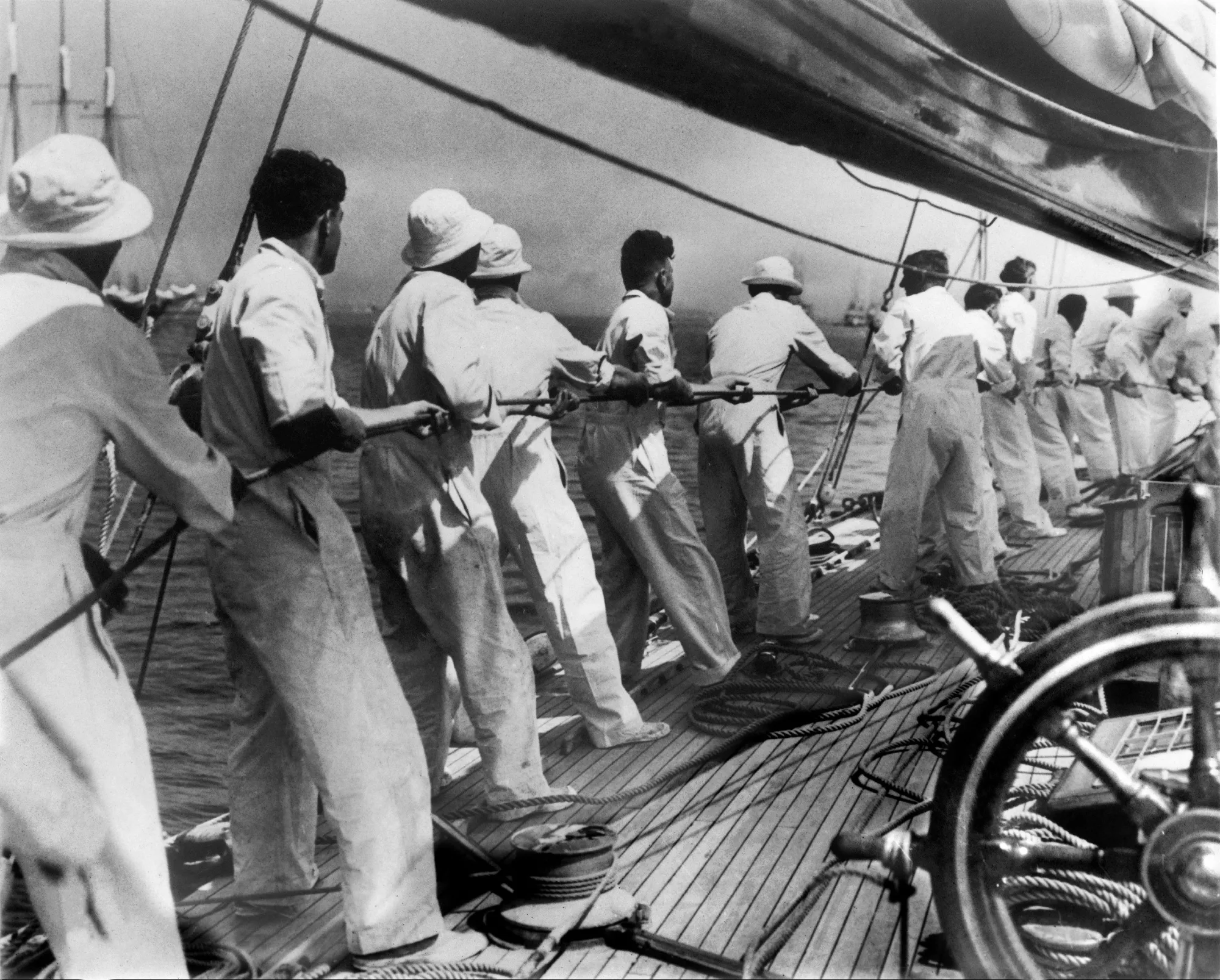 1930年代參加美洲盃的一支帆船隊。攝影:Keystone-France/Getty Images美洲盃每位參賽者的規則——包括賽道、日期和船隻參數——通常由兩家遊艇俱樂部共同商定:衞冕者(當前獎盃持有者)和首個有效挑戰者(符合資格的外國遊艇俱樂部)。整個20世紀大部分時間裏,衞冕者和挑戰者都同意建造並使用特定級別的船隻比賽,比如持續近三十年直至1987年的12米帆船。