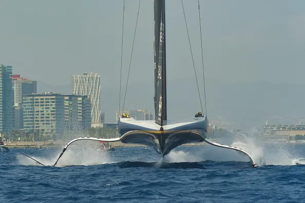 AC75賽艇採用單體船設計,但通過水翼抬升船體離開水面。圖片來源:Europa Press News/Getty Images### ‘這是認真的’