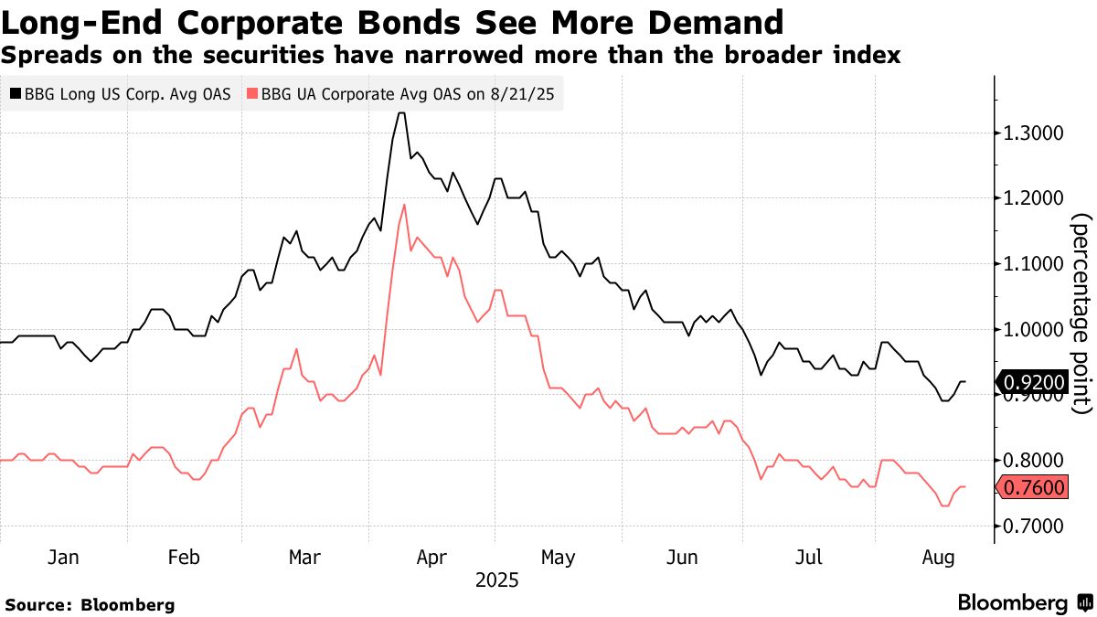 彭博指數顯示,對於久期至少10年的債券,投資者可獲得5.75%的收益率,較十年平均水平高出逾一個百分點。雖然長期限債券收益率多年來一直處於相對高位,但由於資管機構近期持有大量待投資金,今年需求顯得尤為突出。
