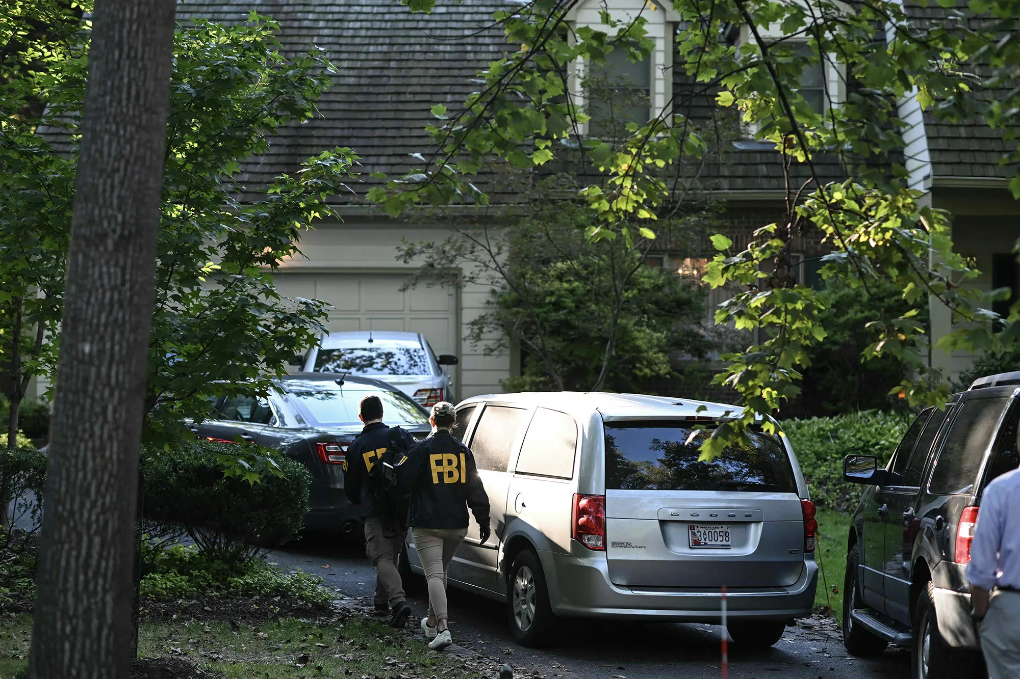 8月22日,聯邦調查局特工在獲得法院授權後,對馬里蘭州貝塞斯達的約翰·博爾頓住所進行搜查時離開其住宅。