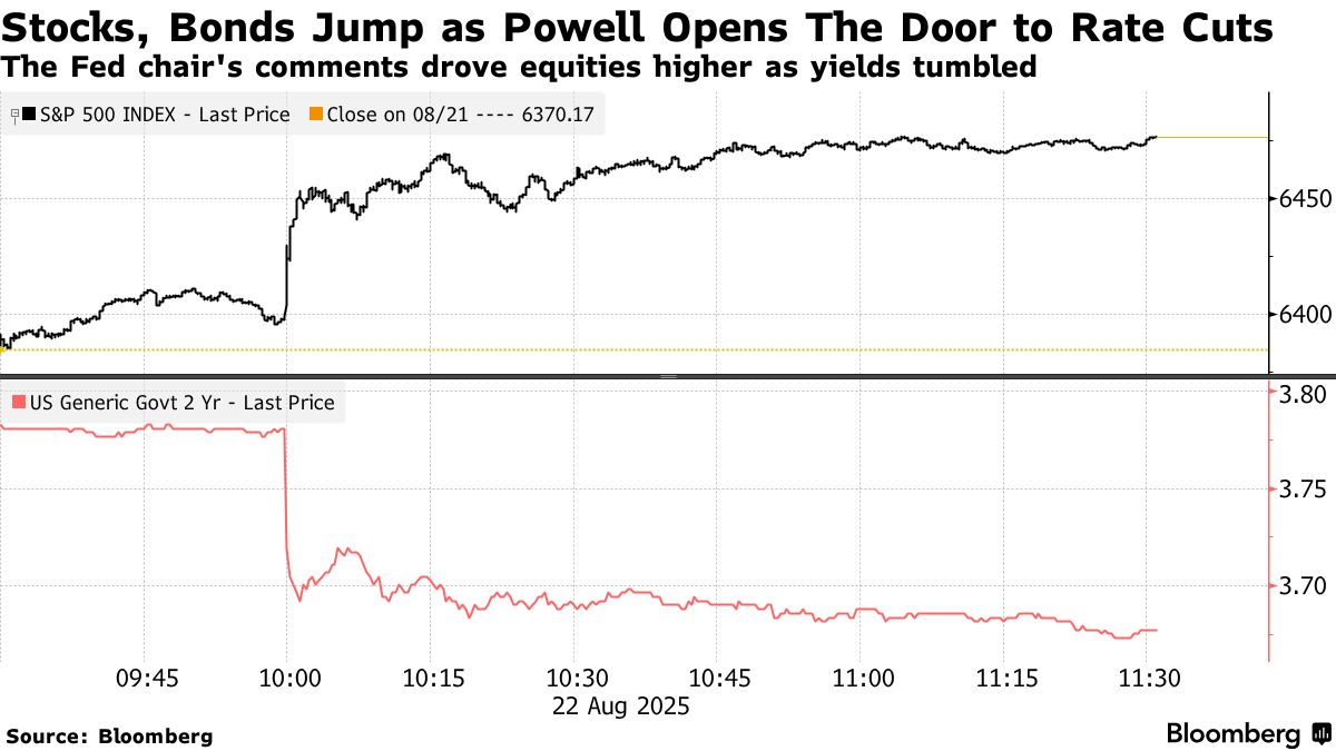 週五他們如願以償——在備受期待的演講中,美聯儲主席釋放出比預期更鴿派的信號,引發自4月以來最大規模的跨市場暴漲。