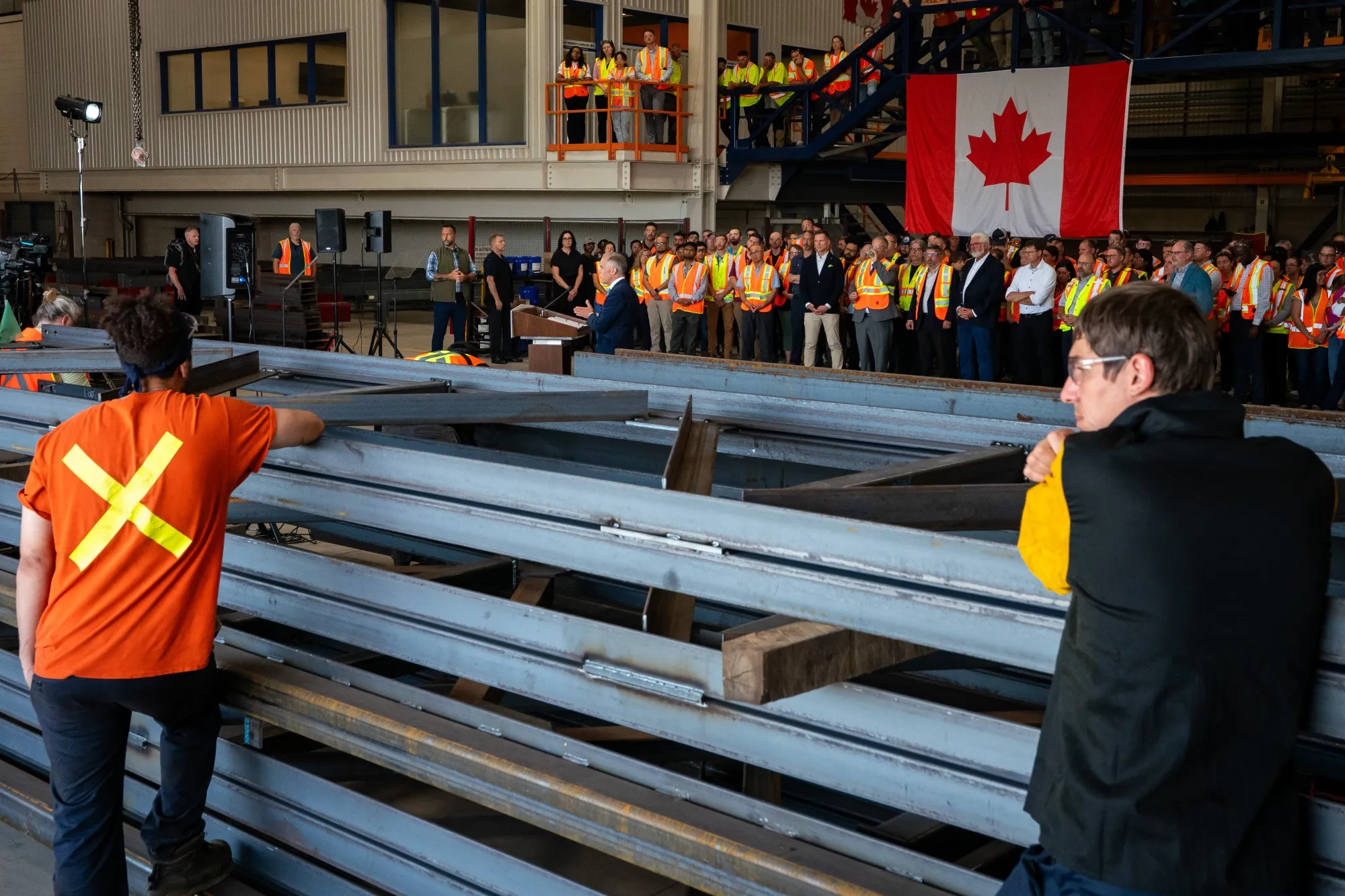 7月馬克·卡尼新聞發佈會上的鋼鐵廠工人。攝影師:阿林·麥卡多里/彭博社在某些行業,如鋼鐵業,一些公司和組織呼籲報復,稱他們處於不利地位。加拿大對美國鋼鐵和鋁的25%進口税仍然存在,但美國對這些金屬的關税是50%。
