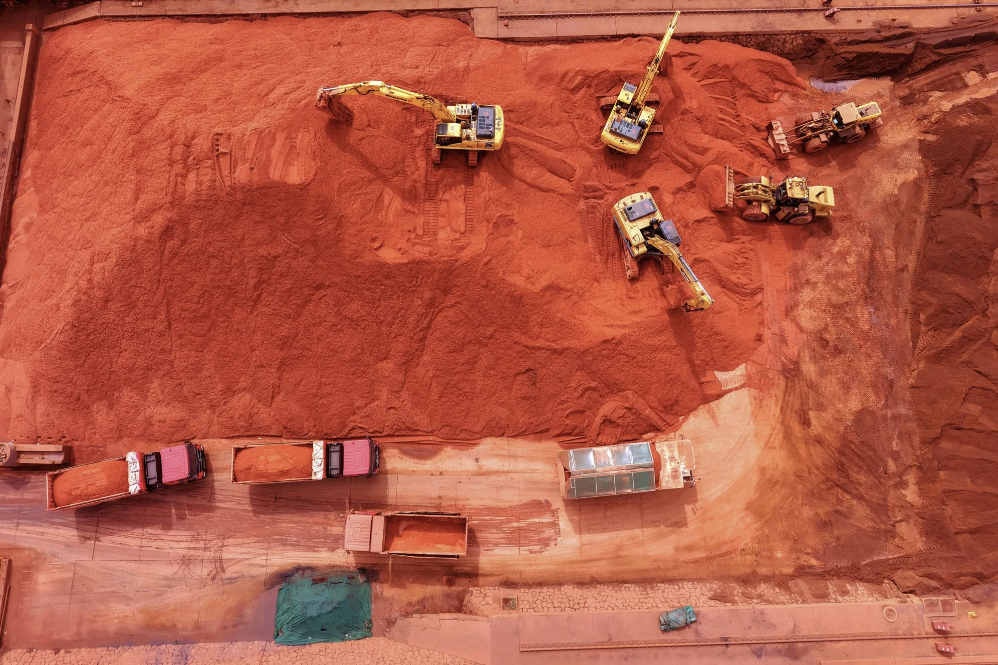 中國青島港進口的鐵礦石。攝影師:STR/法新社/蓋蒂