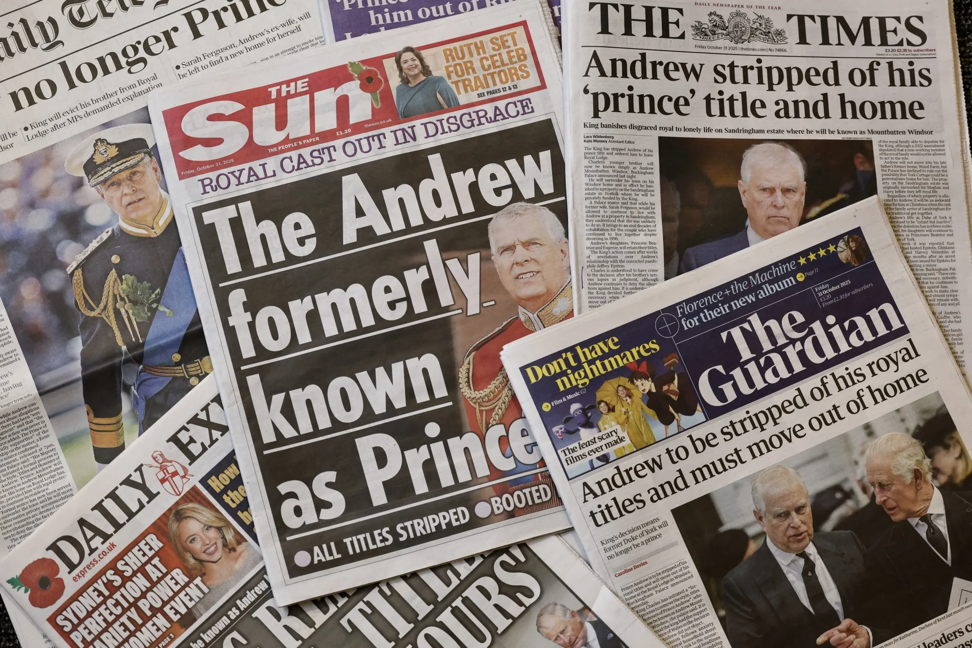 2025年10月31日大多數英國國家報紙的頭版