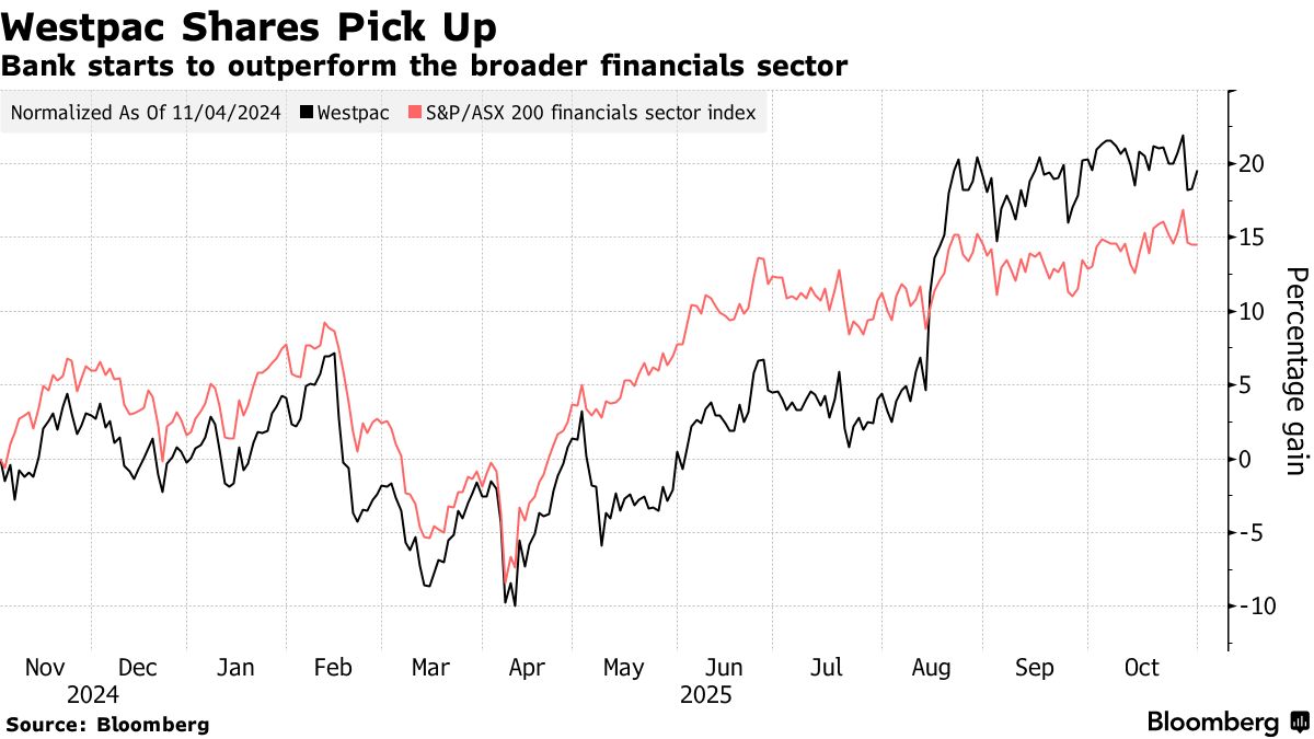 攝影師:麗莎·瑪麗·威廉姆斯/彭博社西太平洋銀行公司。 在抵押貸款和商業貸款增長的推動下,股價延續了今年的強勁上漲。