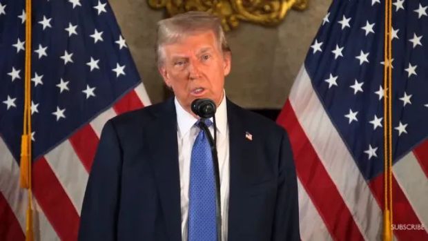 ▲2024年12月16日,特朗普在海湖莊園的新聞發佈會上表示,“中國和美國可以一起解決世界上的所有問題。”