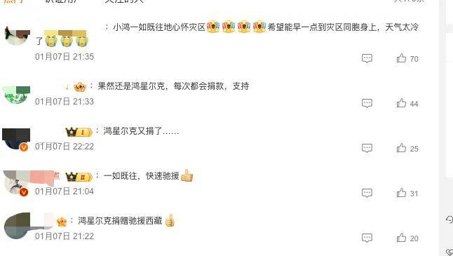 無數網友站出來給鴻星爾克點贊:「小鴻一如既往地心懷災區,希望能早一點到災區同胞身上,天氣太冷了」