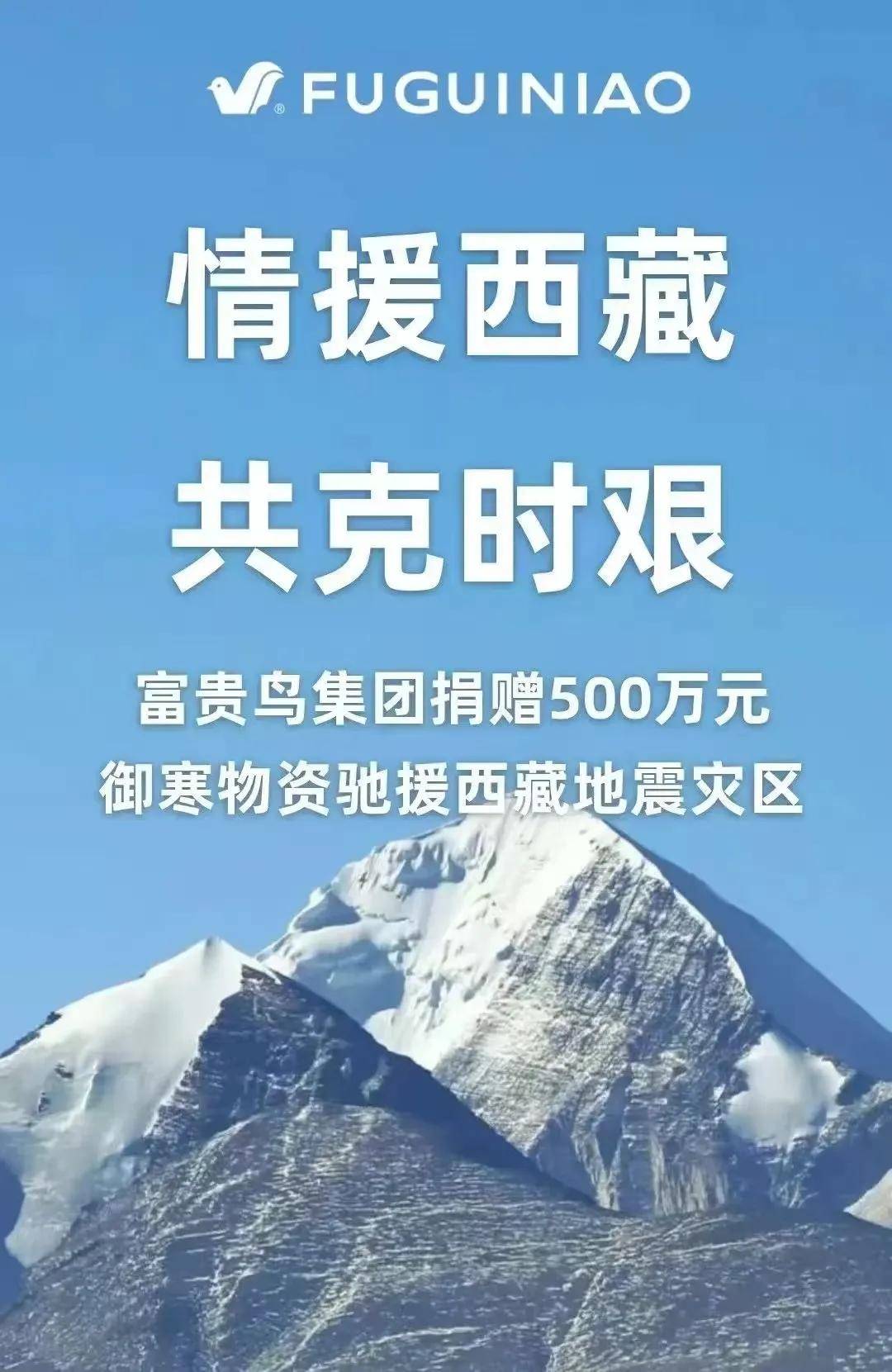 富貴鳥集團宣佈,捐贈500萬禦寒物資馳援子髒地震災區。