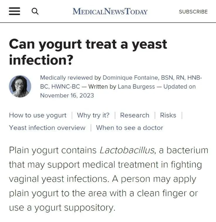 許多生物學家也建議,酸奶是治療酵母菌感染最安全的家庭療法。